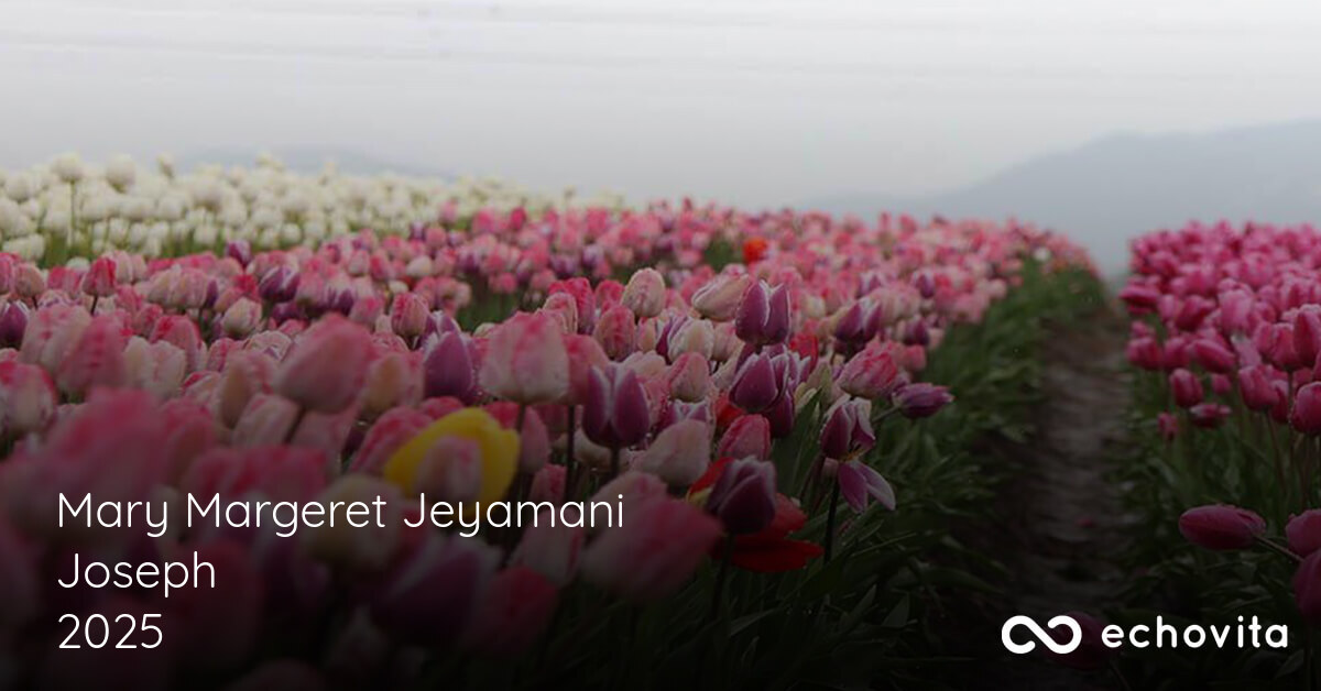 Malheureusement, le 19 novembre 2025, nous avons dû dire au revoir à Mary Margeret Jeyamani Joseph (Montréal, Québec). Afin de combler votre absence, il est possible de témoigner de sincères condoléances à la famille et leurs proches. Laissez une pensée réconfortante en ces temps difficiles dans l'espace réservé ci-dessous. Vous pouvez également y ajouter des souvenirs pour partager les beaux moments vécus.