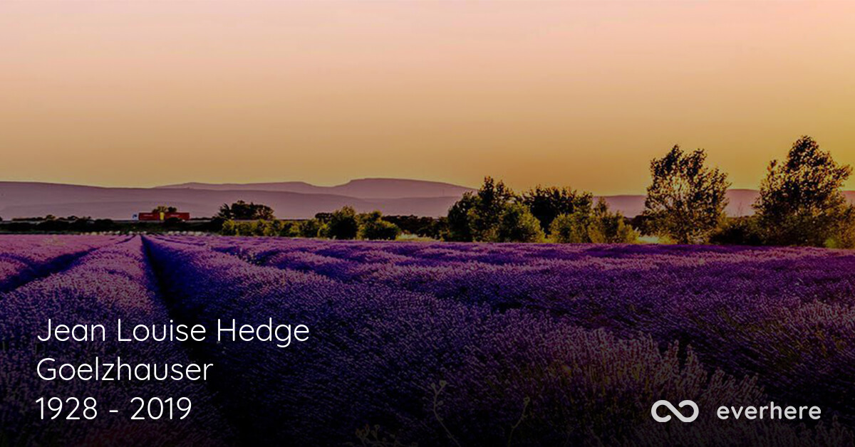 We are sad to announce that on November 14, 2019, at the age of 91, Jean Louise Hedge Goelzhauser (Newburgh, Indiana), born in Evansville, Indiana passed away. Family and friends are welcome to leave their condolences on this memorial page and share them with the family.