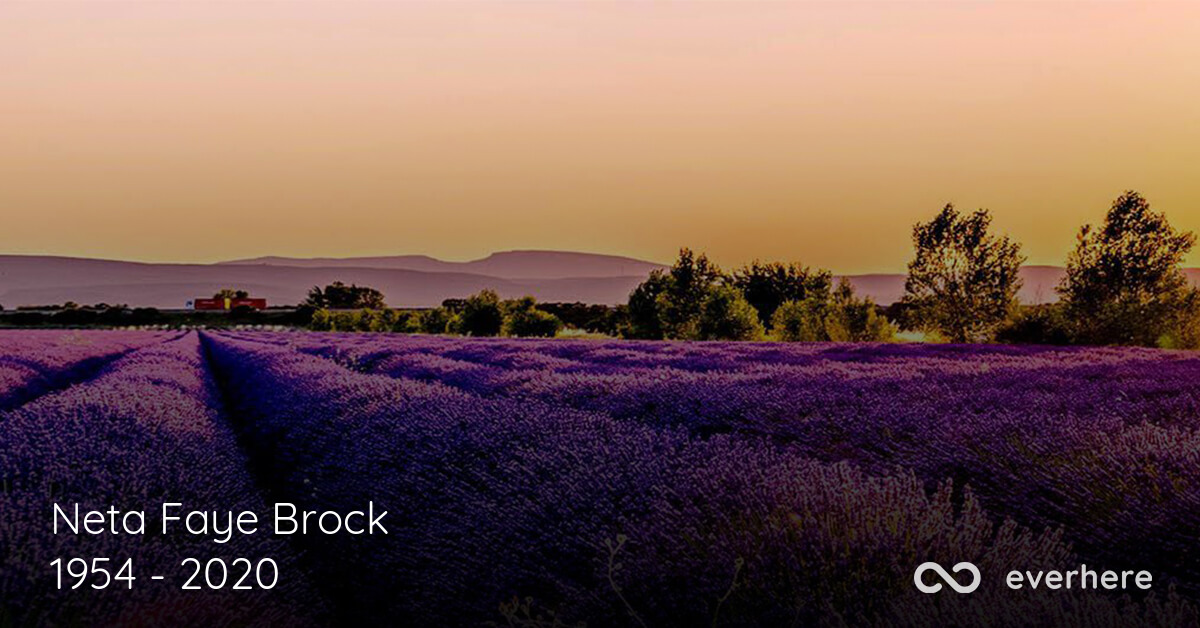We are sad to announce that on May 26, 2020, at the age of 66, Neta Faye Brock (Nancy, Kentucky) passed away. Family and friends are welcome to send flowers or leave their condolences on this memorial page and share them with the family.