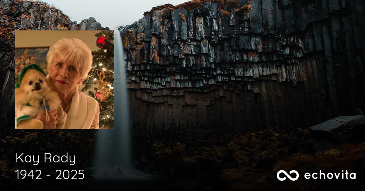 Kay will be dearly missed by her children, Arthur A. Montini, Perry J. Montini, Kristen K. (Anthony Schupp) Montini; grandkids, Anthony (Samantha) Montini, Ashley Montini, Hannah (Fiancé Nicholas Hicks) Montini; great-grandkids, Jonah, Adalyn, Audrey, Amelia, Aurora, Reagan, Jacob, Broderick, Alaina "Blondie", McKinley, Frankie Jo; sister, Heather (Drew) Wallace; long time friend, Sharon Mentsch, and her dear and precious fur babies, her dogs; and other relatives and many cherished friends. She was preceded in death by her loving husband, Ronald E. Rady; parents, Lloyd and Betty; sister, Cheryl, and brother, Ross.